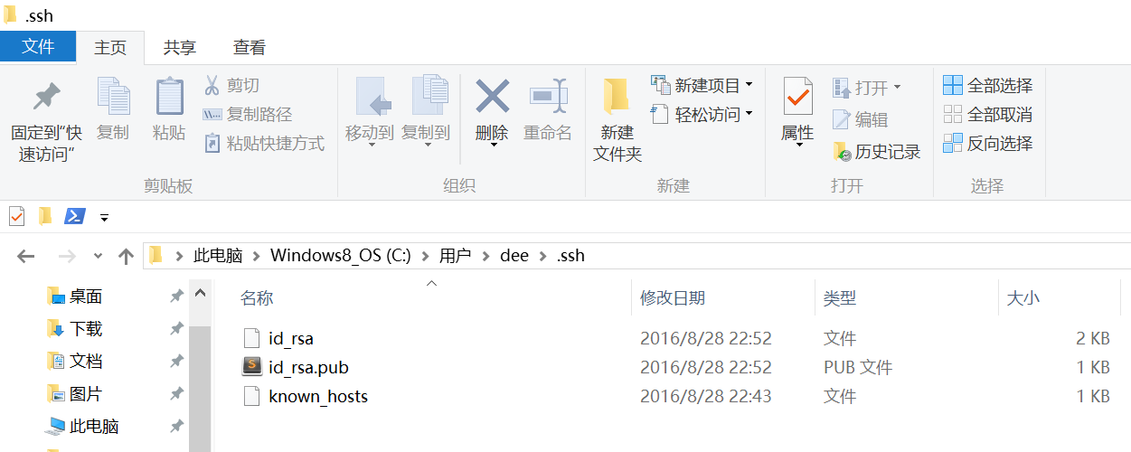 此時(shí) C:\Users\用戶名\.ssh 下會多出兩個文件 id_rsa 和 id_rsa.pub