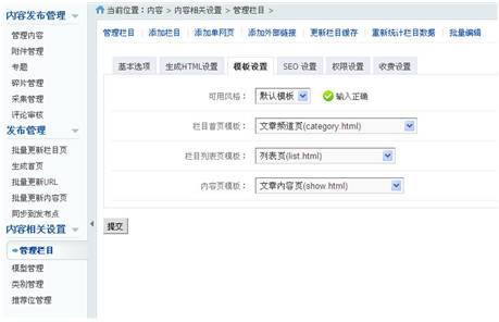 模型可綁定欄目,新建欄目時(shí)選擇模型類型, 這樣在當(dāng)前欄目下添加內(nèi)容時(shí)將繼承模型的定義。并自動(dòng)加載被選模型的模版設(shè)置。如下圖所示: