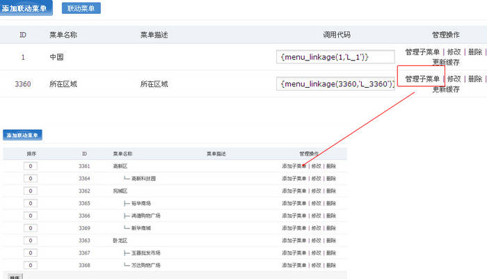 接下來為剛才添加的聯(lián)動(dòng)菜單,添加菜單數(shù)據(jù),如下圖所示: